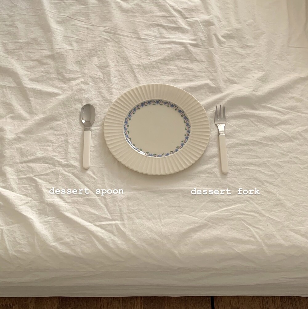 디너(스푼, 포크, 나이프)와 디저트(스푼, 포크) 커트러리로 준비 되어 있습니다