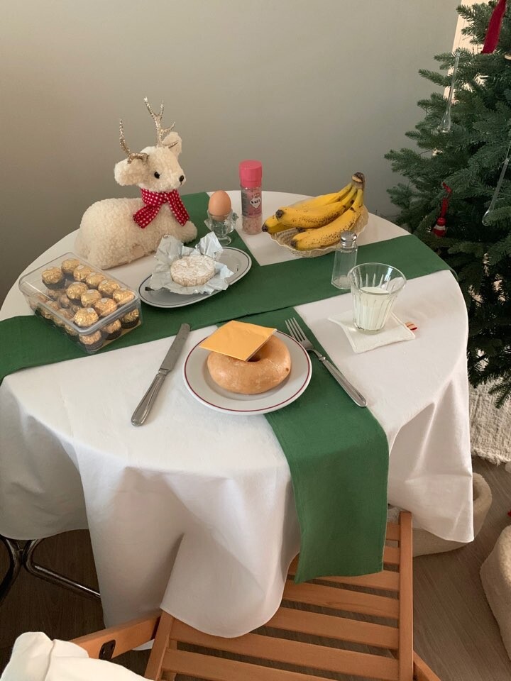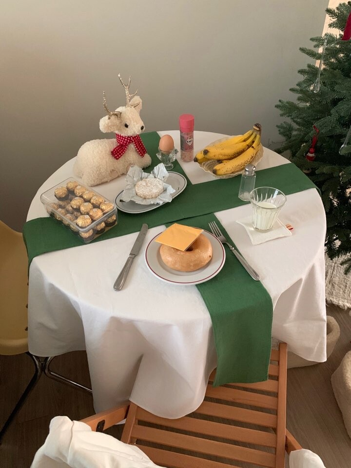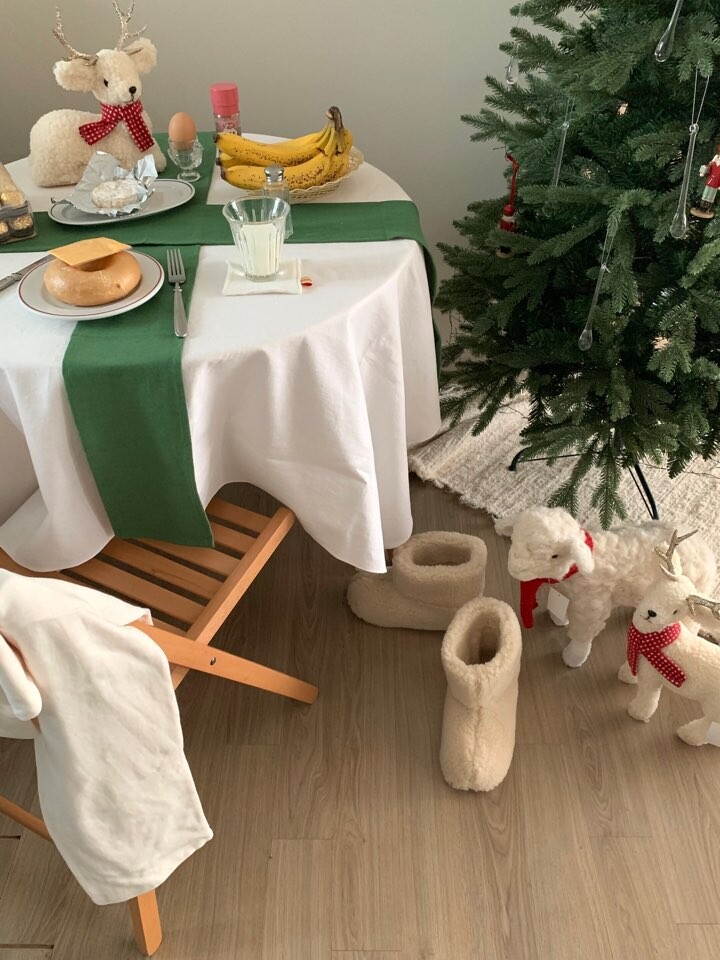 color green / 화이트테이블보+그린컬러 러너 2장 포함구성