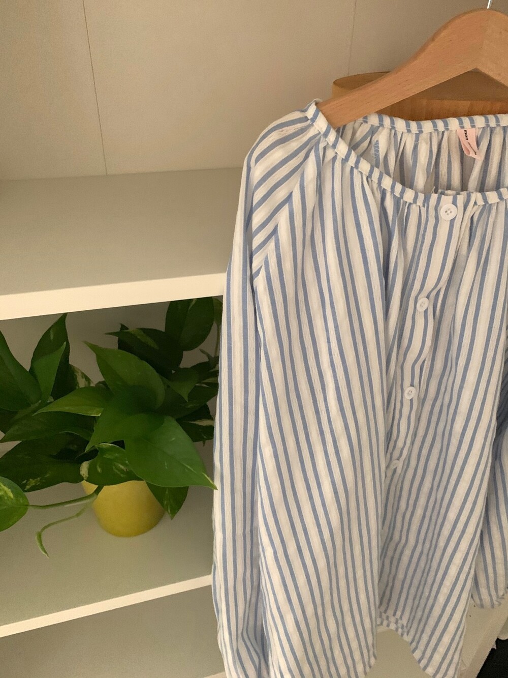 귀여운 블라우스 형태의 상의 때문에