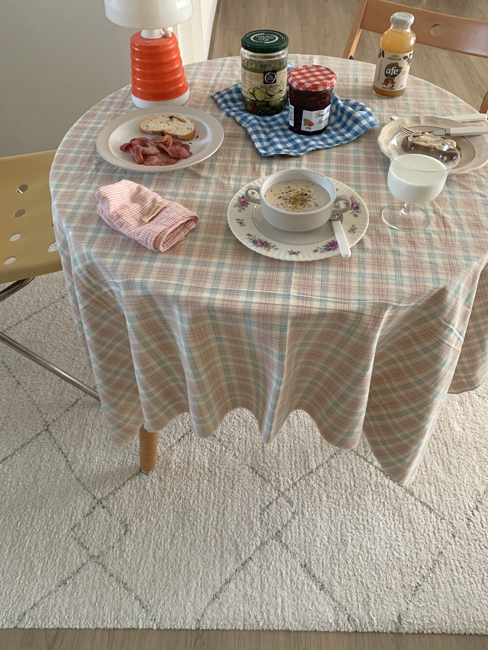 매치된 원형테이블 지름 80cm로 떨어지는 길이 넉넉합니다