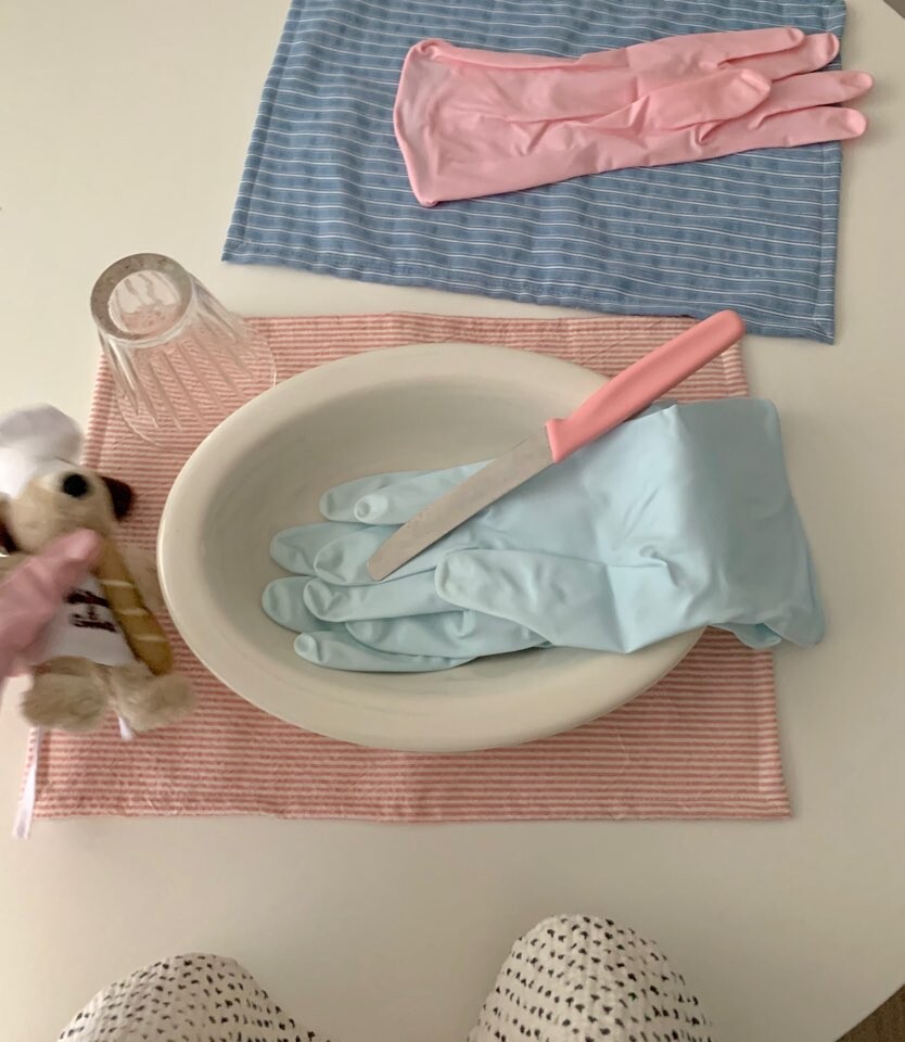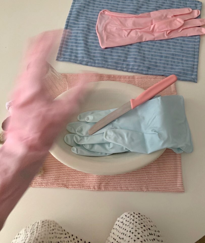 귀여운 핑크, 블루 2가지 컬러의 고무장갑 소개 드려요