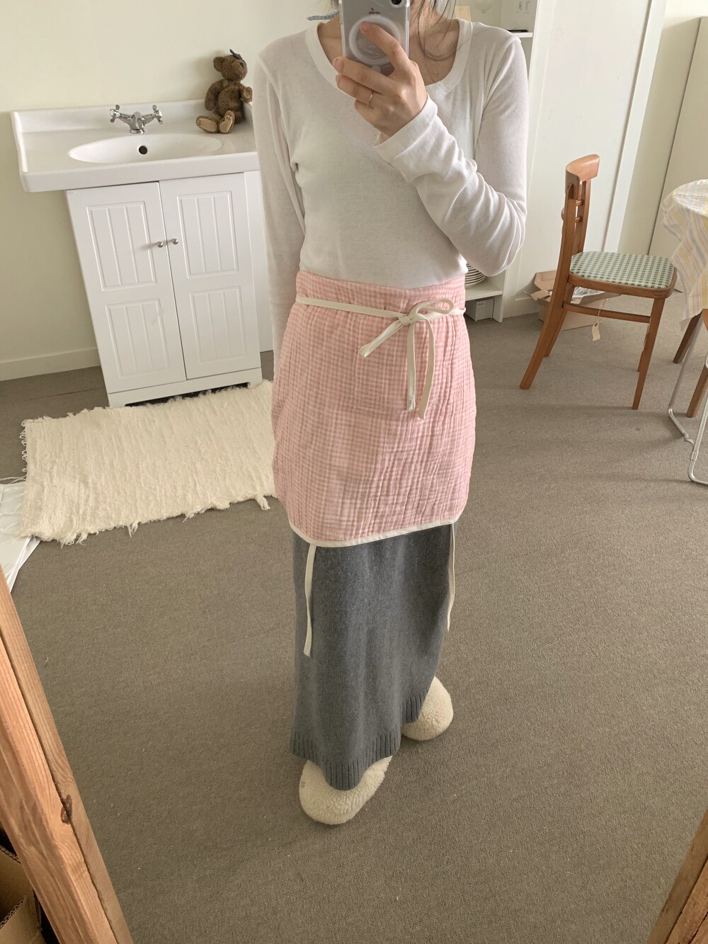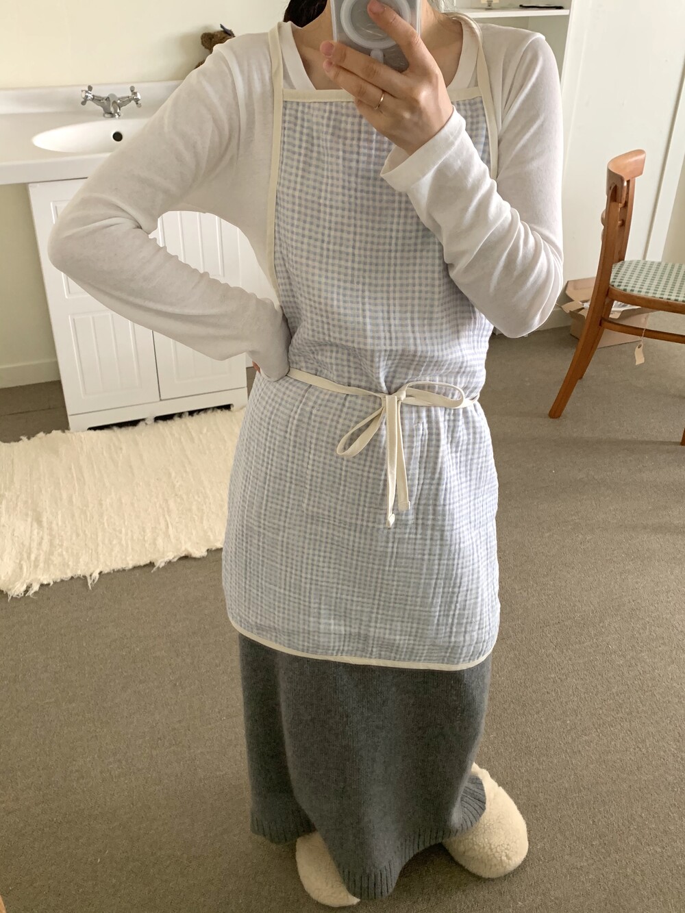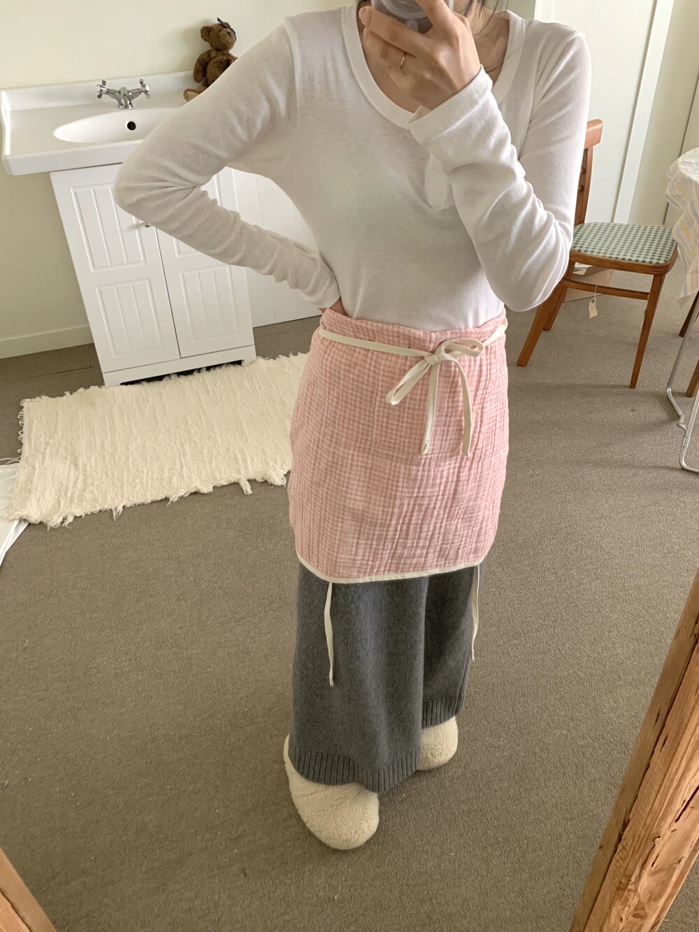 또한 촬영 사진 처럼 앞치마 상의 쪽을 반 으로 접어
